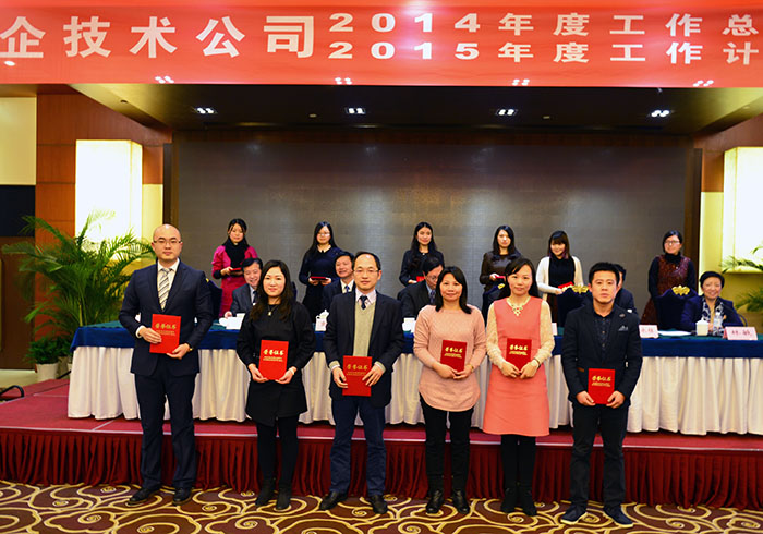 ????????2015年1月20日,我司召開了2014年度工作總結大會。集團董事長黃宏亮及集團相關領導出席了會議。會議由公司副總經理李明主持。此次會議共分五個環節,分別為:公司董事長、總經理林敏女士做技術公司“2014年工作總結及2015年工作計劃”的報告;觀看公司實業投資及海外項目的視頻;陳亮副總經理宣讀2014年度受表彰的先進集體及個人、集團領導及公司領導為獲表彰的先進頒獎、先進代表發表感言;陳亮副總經理代表公司領導班子發言;集團董事長黃宏亮先生做重要講話。