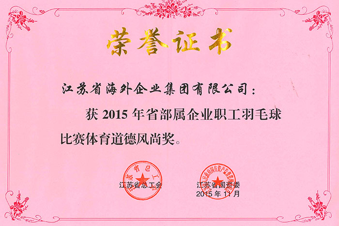 ????????我司龔堅(jiān)、周兵、王光毅、黃鏡清代表江蘇省海外企業(yè)集團(tuán)參加了男子單打項(xiàng)目的角逐。本次比賽旨在加強(qiáng)企業(yè)文化和職工文化建設(shè),提高職工健康水平,我司參賽選手秉承頑強(qiáng)拼搏、力爭(zhēng)上游、團(tuán)結(jié)互助的比賽精神,在賽場(chǎng)上不畏強(qiáng)敵,揮汗如雨,奮勇爭(zhēng)先。他們矯健的身影,激烈的對(duì)抗,流著汗水的表情成了羽毛球館內(nèi)一道靚麗的風(fēng)景線。經(jīng)過兩天緊張激烈的比賽,我司隊(duì)員獲得了賽會(huì)頒發(fā)的體育道德風(fēng)尚獎(jiǎng),賽出了風(fēng)格、賽出了自我、賽出了友誼。