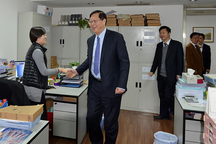 ????????黃宏亮董事長首先代表集團向我司全體員工致以節日的問候,并衷心祝愿大家新年快樂!家庭幸福!身體健康!萬事如意!同時,黃宏亮董事長還親臨各個部門同員工們一一握手,親切問候,并對新的一年工作進行了動員,強調今年是“十三五”開局之年,今年的春天是一個五年的春天,一定要起好步,開好局,打好第一仗,提升經濟效益,完成發展目標,務必要把今年的各項工作抓早、抓新、抓實、抓嚴。
