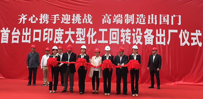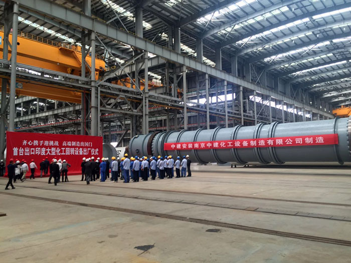 ????????我司承包設計、制造、指導安裝及調試的印度日處理810噸純堿項目關鍵設備煅燒爐于2016年5月12日在制造廠南京中建化工設備制造有限公司順利舉行出廠儀式。江蘇海企技術工程股份有限公司董事長林敏女士出席并致辭。
