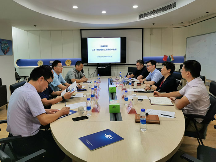 ????????2020年8月11日,省農業農村廳對外交流合作處一級調研員田玉斌、一級主任科員馮得勝、連云港市農業農村局對外經濟合作中心主任范郁爾、南京農業大學經管學院副教授劉愛軍等一行領導來我司調研江蘇—新陽嘎農工貿現代產業園棉花、紡紗產業發展。