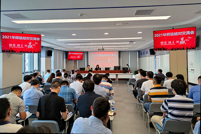 ????????近年來,江蘇海外集團國際技術工程有限公司(以下簡稱公司)一直關注青年員工的成長與培養(yǎng),采取了諸多有力舉措,“師徒結對”活動就是其中之一。2021年8月19日下午,公司2021上半年度“師徒結對”效果匯報交流會在14樓開標一廳舉行。會議由綜合辦公室主任王海婷主持,公司領導班子到會講話,各業(yè)務部門負責人參加,結對的全體“師傅”和“徒弟”近70人與會。