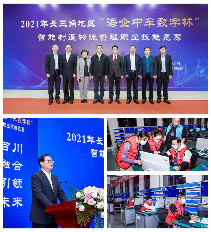????????11月21日,2021年長三角地區“海企?中車數字杯”智能制造物流管理職業技能競賽在江蘇省交通技師學院開幕。江蘇省人大常委會副主任,省總工會主席魏國強,浙江省總工會副主席張衛華,安徽省總工會二級巡視員丁勝如,江蘇省發改委副主任李榮錦,省人社廳副廳長顧潮,省交通運輸廳副廳長金凌,省總工會副主席井良強,共青團江蘇省委副書記熊俊,江蘇省海外企業集團有限公司董事長黃宏亮、江蘇海外集團國際技術工程有限公司董事長林敏及班子成員等出席開幕式。