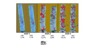 2.2細(xì)支煙燃燒包灰檢測(cè)技術(shù)及工藝改進(jìn)1)細(xì)支煙燃燒包灰檢測(cè) 細(xì)支煙在人們眼中是一種時(shí)尚也是一種品位,細(xì)支煙通常是和咖啡,音樂和時(shí)尚休閑等詞匯聯(lián)系在一起,但是在細(xì)支煙抽吸的過程中,如果產(chǎn)生嚴(yán)重的包灰散落現(xiàn)象,必然會(huì)引起消費(fèi)者的不滿,韓國(guó)KT&G煙草人參公社基于客戶的市場(chǎng)投訴,將細(xì)支煙的燃燒包灰作為一項(xiàng)日常檢測(cè)指標(biāo),并對(duì)相關(guān)工藝和材料進(jìn)行不斷的改進(jìn)。根據(jù)筆者的調(diào)研,目前國(guó)內(nèi)還沒有相關(guān)卷煙燃燒包灰的檢測(cè)標(biāo)準(zhǔn)和評(píng)判體系,湖北中煙的程占剛和福建中煙的王道寬分別用自制的儀器對(duì)卷煙包灰性能的影響因素作了相關(guān)研究[6][7],國(guó)內(nèi)目前對(duì)于卷煙的包灰檢測(cè)分析僅存在于研究階段,并沒有出臺(tái)完整的標(biāo)準(zhǔn)化檢測(cè)指標(biāo)。韓國(guó)KT&G煙草人參公社自行研發(fā)的5通道卷煙包灰完整性分析測(cè)試儀,自帶抽吸裝置,可以模擬動(dòng)態(tài)和靜態(tài)灰柱。并自帶視頻系統(tǒng)和圖像分析軟件,對(duì)包灰的性能進(jìn)行數(shù)據(jù)化指標(biāo)計(jì)算,形成了一套完整的評(píng)測(cè)體系。如圖5。